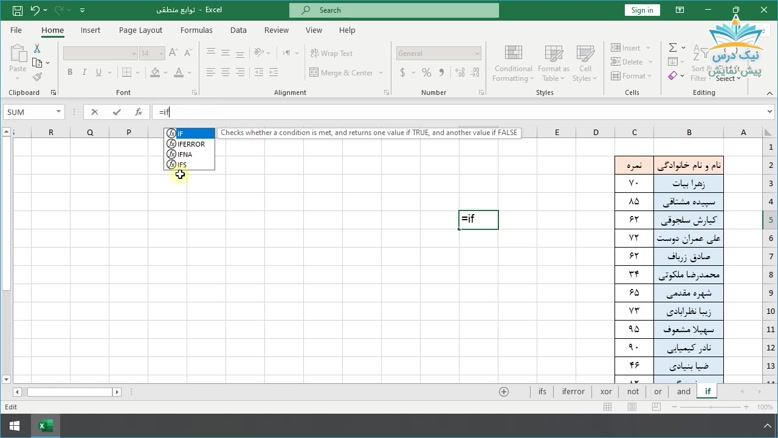 بیش از 5 ساعت آموزش فرمول نویسی و کار با توابع اکسل (Excel Function) با کیفیت بالا، حجم کم و هزینه پایین در آکادمی نیک درس در اختیار مخاطبین قرار دارد.