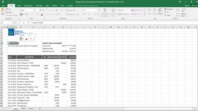 PARAGUAY BANCO AMAMBAY BANK STATEMENT EXCEL AND PDF TEMPLATE | Editable bank Statement template | 3 month bank statement generator | 3 month bank statement generator |