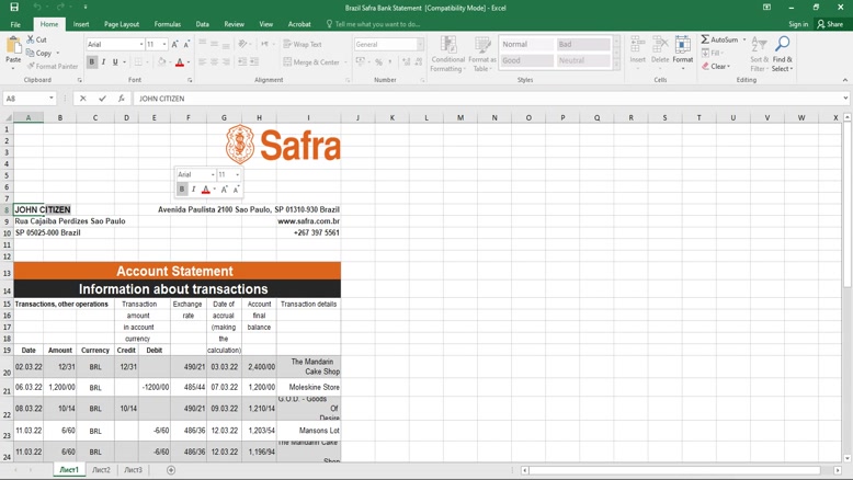 BRAZIL SAFRA BANK STATEMENT TEMPLATE IN EXCEL AND PDF FORMAT | Editable bank Statement template | 3 month bank statement generator | 3 month bank statement generator |
