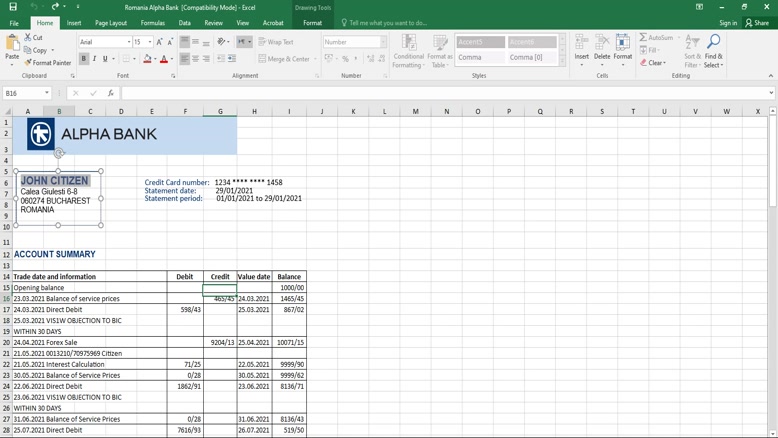 ROMANIA ALPHA BANK STATEMENT EASY TO FILL TEMPLATE IN EXCEL