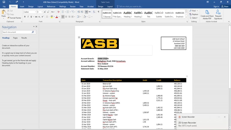 NEW ZEALAND ASB PROOF OF ADDRES BANK STATEMENT TEMPLATE IN W