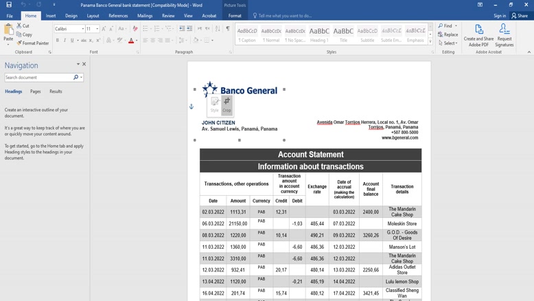 FAKE PANAMA BANISTMO BANK STATEMENT TEMPLATE