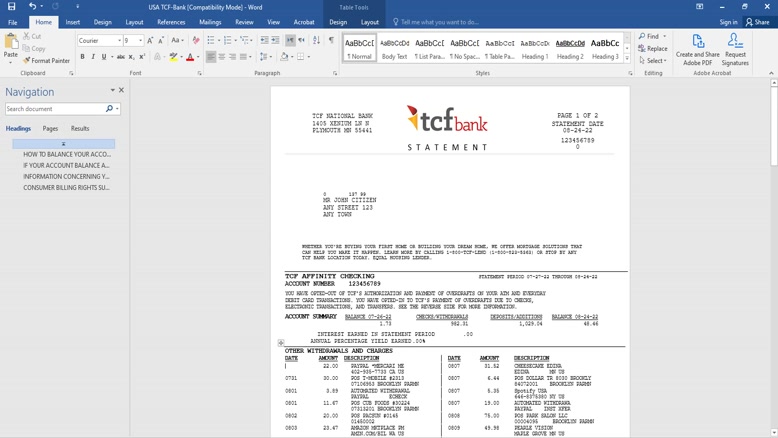 USA TCF BANK STATEMENT, WORD AND PDF TEMPLATE, 3 PAGES | Editable bank Statement template | 3 month bank statement generator | 3 month bank statement generator |