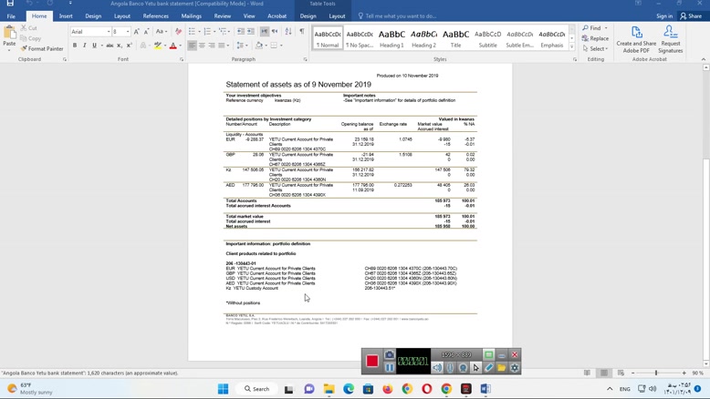 FAKE ANGOLA BANCO YETU BANK STATEMENT TEMPLATE