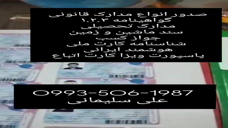صدور مدارک قانونی رزرو مدارک تماس بگیرید 09935061987 علی سلیمانی